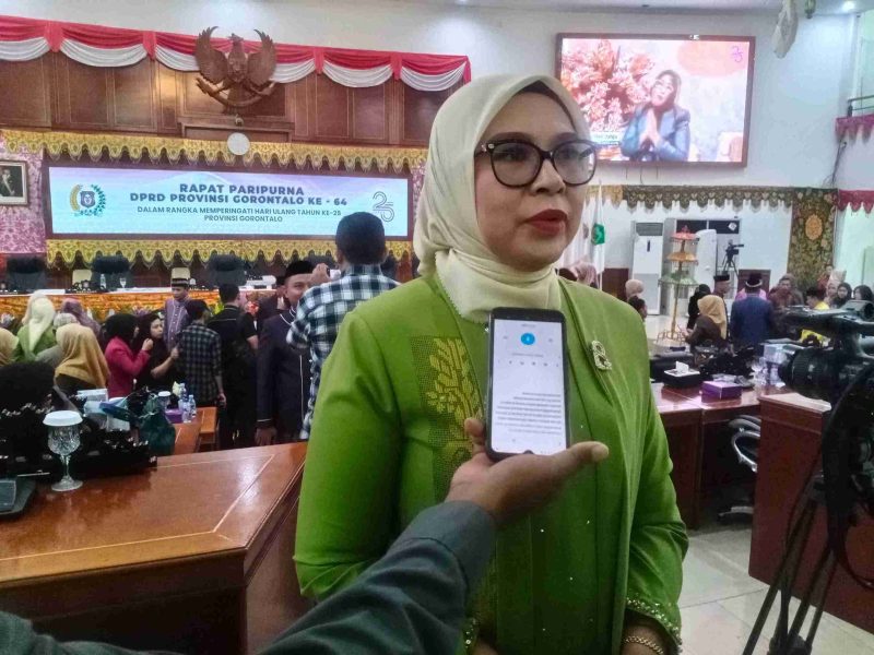 GORONTALO (JM) – Pada Rapat Paripurna DPRD Provinsi Gorontalo dalam rangka memperingati Hari Ulang Tahun ke-25 Provinsi Gorontalo, Jumat (5/12/2025), Anggota DPRD Provinsi Gorontalo, Kristina Mohamad Udoki atau yang akrab disapa Femi Udoki, menyampaikan apresiasi sekaligus kritik tajam terhadap arah program Pemerintah Provinsi Gorontalo tahun mendatang.