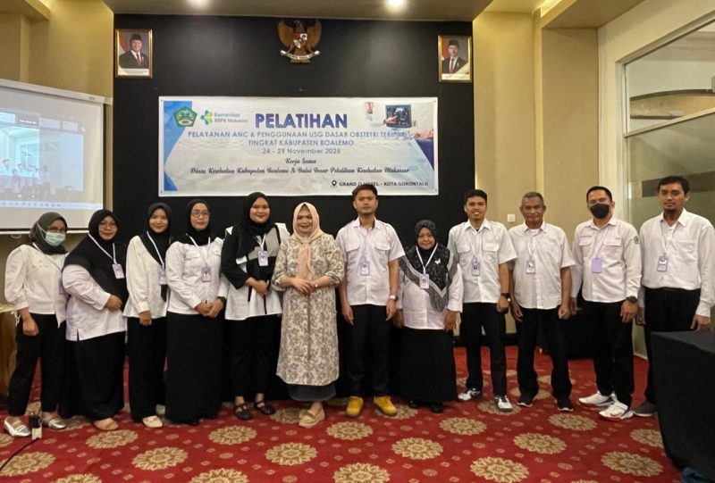 GORONTALO (JM) – Dinas Kesehatan Kabupaten Boalemo bekerja sama dengan Balai Besar Pelatihan Kesehatan (BBPK) Makassar menggelar Pelatihan Pelayanan Antenatal Care (ANC) Terintegrasi dan Penggunaan USG Dasar Obstetri Terbatas tingkat Kabupaten Boalemo. Kegiatan yang berlangsung di Hotel Grand Q pada Senin (24/11/2025) itu dibuka langsung oleh Kepala Dinas Kesehatan Boalemo, Sutriyani N. Lumula, SST., M.Kes.