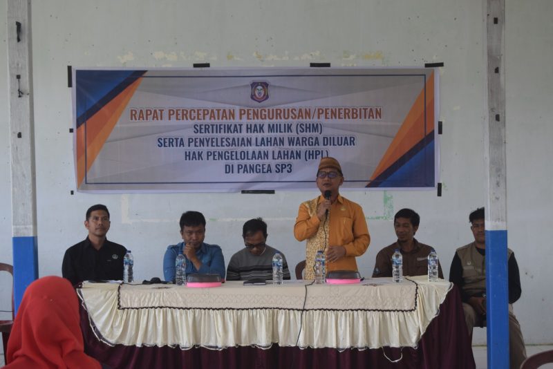 BOALEMO (JM) – Dinas Tenaga Kerja dan Transmigrasi (Nakertrans) Kabupaten Boalemo bersama jajaran menghadiri rapat percepatan pengurusan penerbitan Sertifikat Hak Milik (SHM) serta penyelesaian lahan warga di luar Hak Pengelolaan Lahan (HPL) di kawasan transmigrasi Pangea SP3, Kamis (26/6/2025).