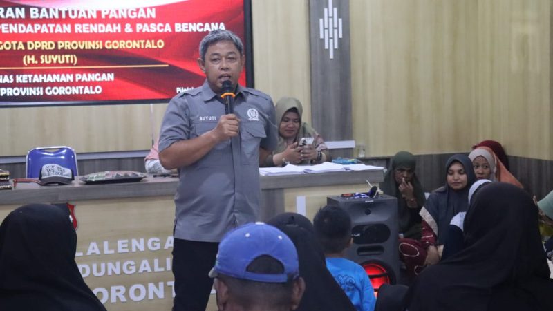 GORONTALO (JM) — Anggota DPRD Provinsi Gorontalo, H. Suyuti, menyalurkan bantuan pangan kepada masyarakat di Desa Pilolalenga dan Desa Kaliyoso, Kecamatan Bongomeme, Jumat (7/11/2025). Bantuan tersebut merupakan bagian dari program bantuan pangan Pemerintah Provinsi Gorontalo yang disalurkan melalui Dinas Ketahanan Pangan.
