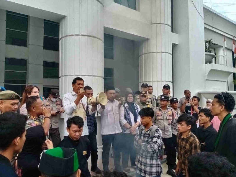 Gorontalo (JM) – Himpunan Mahasiswa Islam (HMI) menggelar aksi unjuk rasa di depan Gedung DPRD Provinsi Gorontalo, Senin (5/4/2025), untuk menyampaikan penolakan terhadap Undang-Undang Tentara Nasional Indonesia (UU TNI) dan mendesak penghentian pembahasan Rancangan Undang-Undang Kepolisian (RUU Polri) di DPR RI.