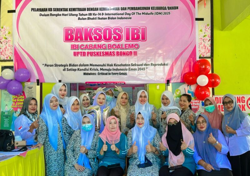 BOALEMO (JM) – Dalam rangka memperingati Hari Ulang Tahun (HUT) Ikatan Bidan Indonesia (IBI) ke-74, IBI Cabang Boalemo menggelar bakti sosial (baksos) berupa pelayanan Keluarga Berencana (KB) serentak di UPTD Puskesmas Bongo II, Senin (26/5/2025).