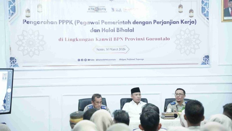 GORONTALO (JM) – Kepala Kantor Pertanahan Kabupaten Boalemo menghadiri agenda pengarahan bagi Pegawai Pemerintah dengan Perjanjian Kerja (PPPK) yang dirangkaikan dengan acara Halalbihalal di lingkungan Kantor Wilayah BPN Provinsi Gorontalo.