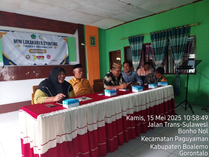 BOALEMO (JM) – Pemerintah Kecamatan Paguyaman menggelar Mini Loka Karya Gerak 2 yang berlangsung di Kantor Desa Bongo Nol. Kegiatan ini menjadi bagian dari upaya bersama lintas sektor dalam mendorong percepatan penurunan stunting di wilayah Kecamatan Paguyaman.