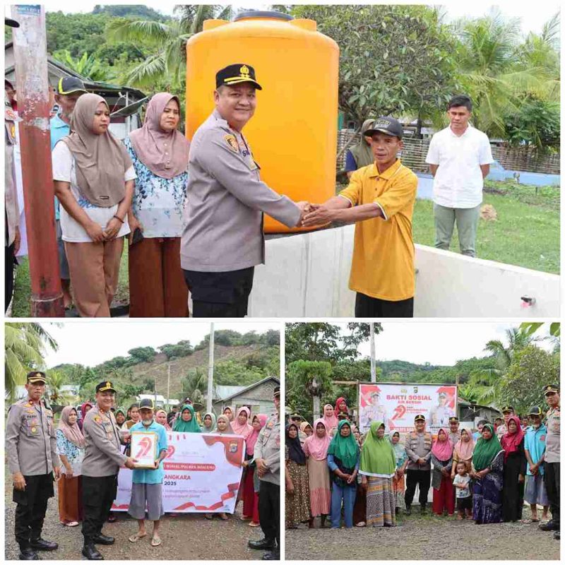 BOALEMO (JM) – Dalam rangka memperingati Hari Bhayangkara ke-79, Polres Boalemo menyerahkan bantuan berupa tempat penampungan air bersih dan paket sembako kepada masyarakat Dusun Tambe, Desa Pentadu Timur, Rabu (25/6/2025).