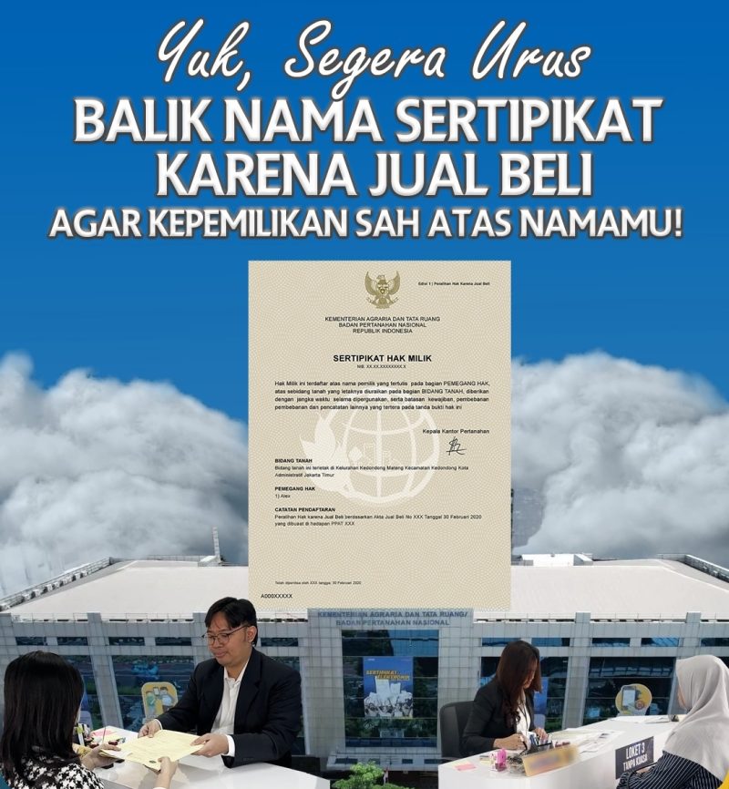 Proses Balik Nama: Kantor Pertanahan memproses perubahan nama pada sertipikat hingga selesai.